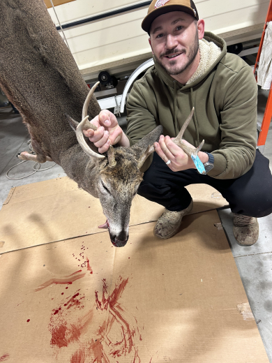 Andrew Marut from Pinconning bagged his 7 point in Rose City! I promised myself I would hunt until 5pm. I looked at my phone to check the time, and it was 4:55. I set my phone back down to keep my promise. I looked up and there’s a doe standing in my shooting lane. A few seconds later, a buck came running in grunting and acting crazy. He started tearing up the ground with his rack, stepped into the shooting lane, and I got him! 5pm on the nose!